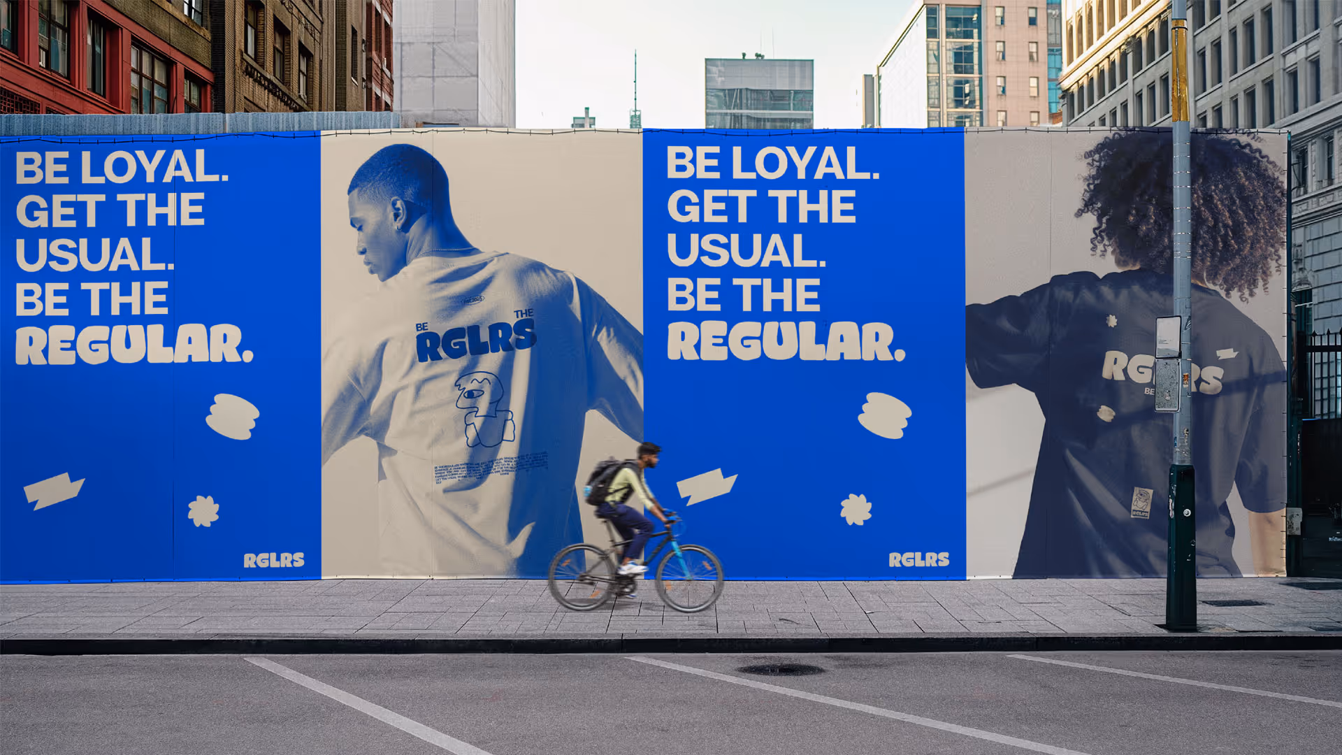 RGLRS is a clothing brand meant to promote a healthy mindset in your life with maintaining a routine and being a part of a community. Using terms like "Get the Usual", akin to being a regular at a local restaurant, and "Be Loyal" to encourage staying local with smaller businesses. The simple illustration and shapes used in the marketing materials serve to make viewers appreciate how impactful smaller things can be.